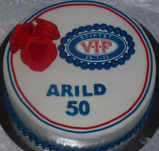 Skokoladekake med sjokoladekrem, trekt med sukkerpasta. Pynt er marsipan. Logoen er spiselig bilde .)